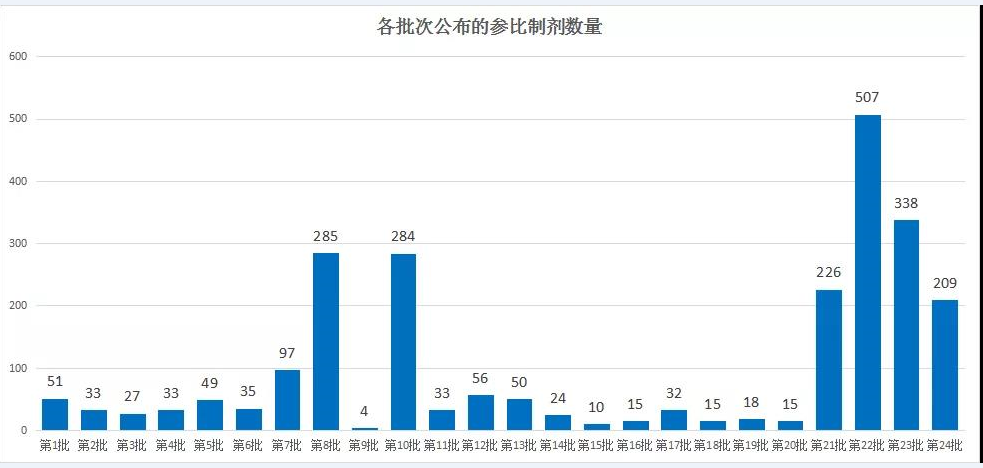 图1各批次公布的参比制剂数量