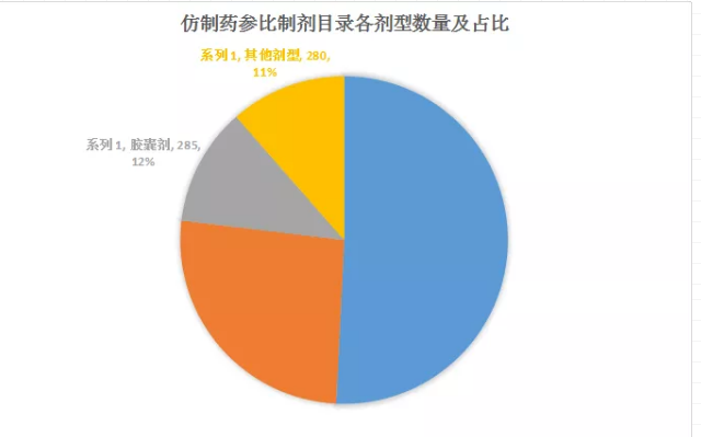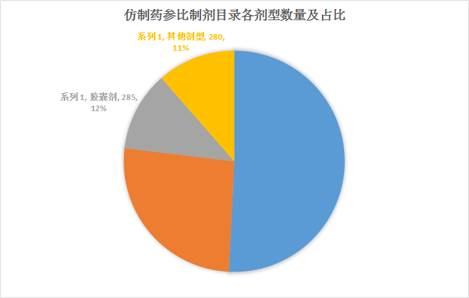 图2 仿制药参比制剂目录各剂型数量及占比